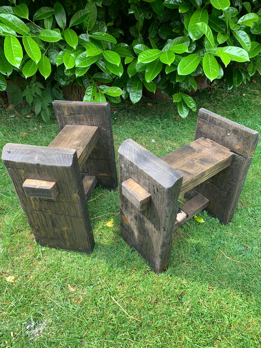 Garden Sleeper Bench Legs - Handmade and Finished in Dark Oak