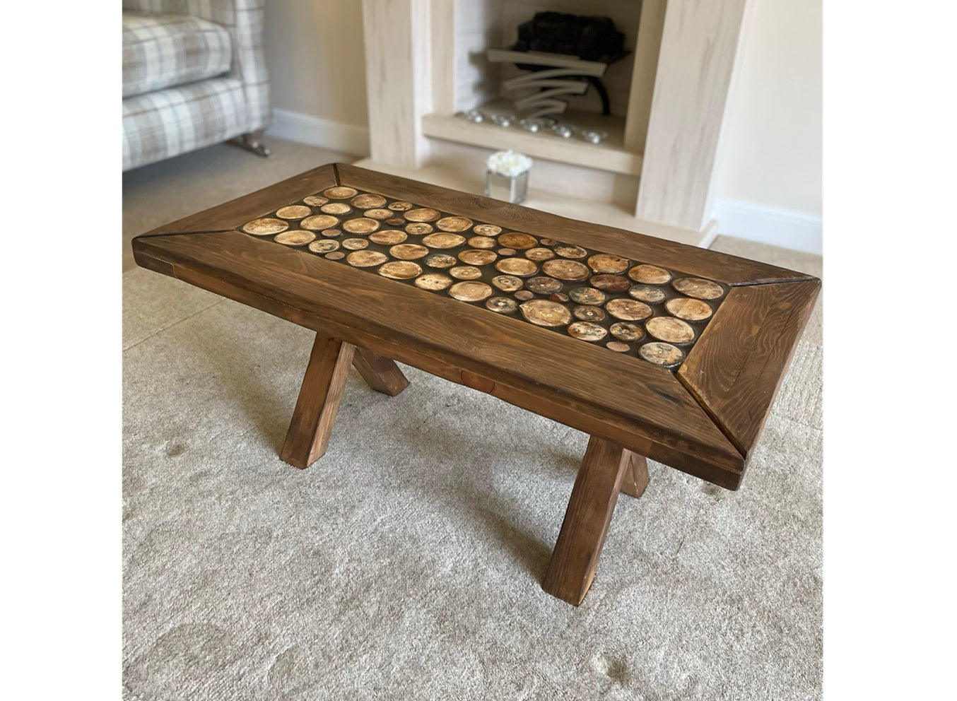 Using real wood log slices surrounded by clear resin to create this great focus piece.