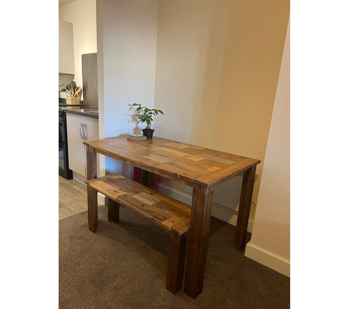 The Patchwork Table and matching bench was the perfect additional to this clients modern, compact space.
