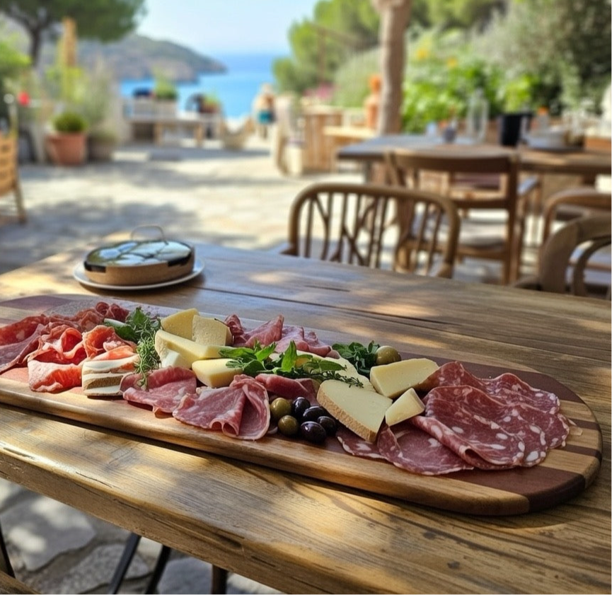 Handcrafted from locally sourced hardwood, these charcuterie boards combine rustic charm with practical elegance. Each piece is finished in food-safe wax to protect against moisture and wear, making them ideal for serving cured meats, cheeses, and accompaniments. Whether hosting intimate gatherings indoors or entertaining guests al fresco, these boards deliver both functionality and aesthetic appeal. The natural grain patterns ensure every board is uniquely beautiful, while the durable construction promises years of reliable service for your entertaining needs.