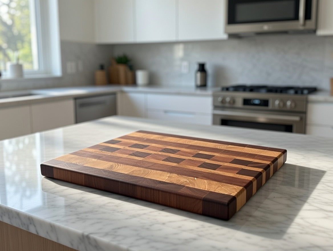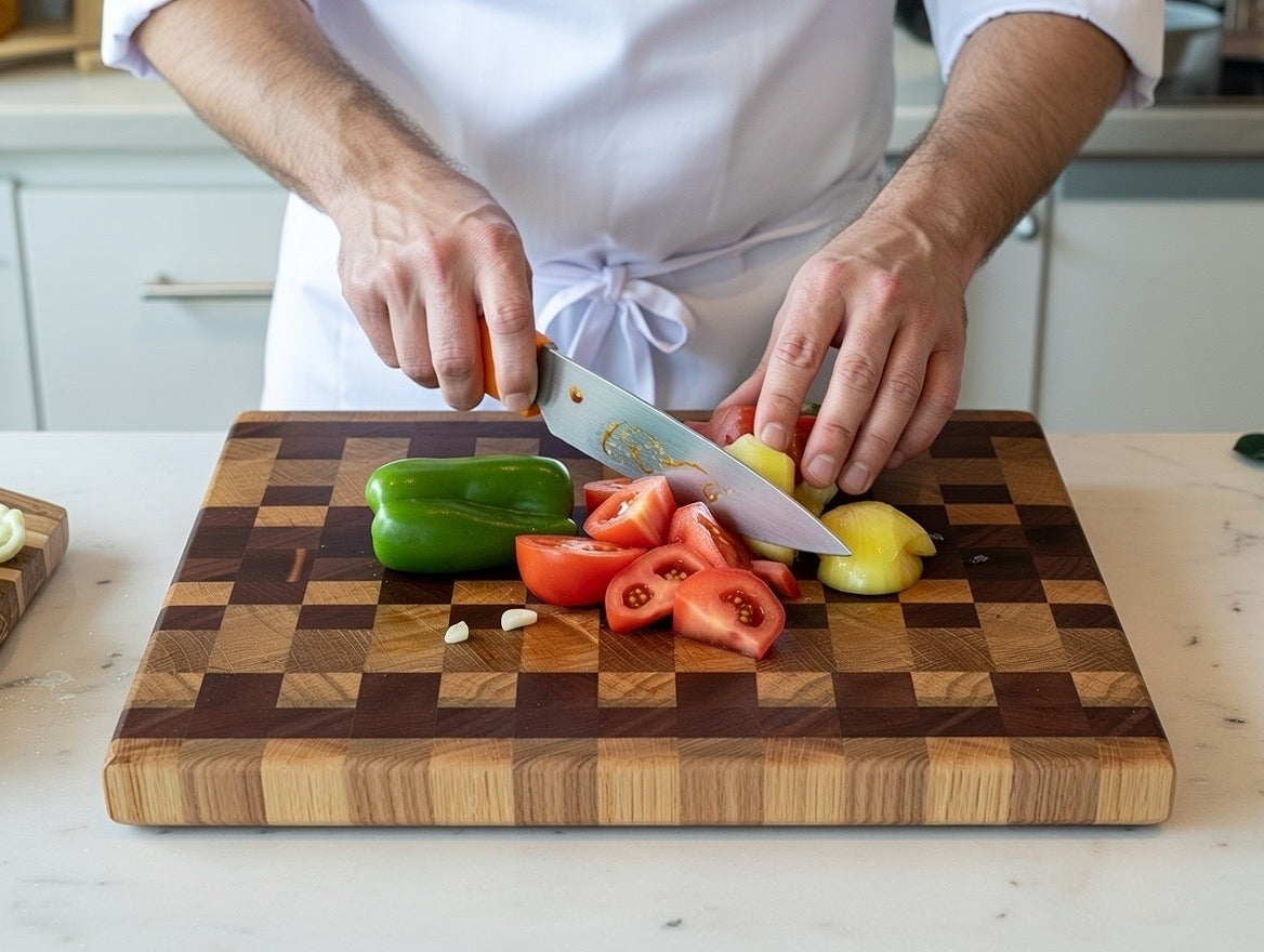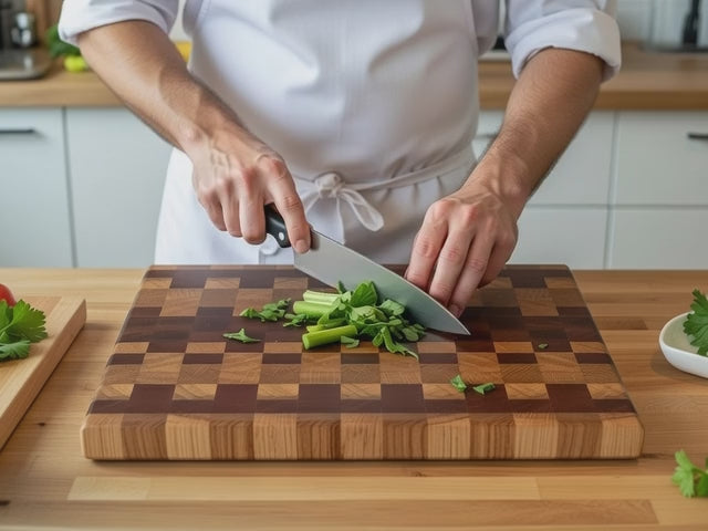 Crafted from carefully selected locally sourced hardwoods, our end grain chopping boards showcase traditional woodworking expertise. The endgrain construction provides superior durability and self-healing properties, allowing the board to resist knife marks and maintain its surface integrity through years of use. Each handmade piece is individually finished to enhance the natural wood grain, creating a functional kitchen essential that doubles as an attractive serving surface. Food-safe and built to last, these boards represent the perfect marriage of artisanal craftsmanship and practical kitchen performance.