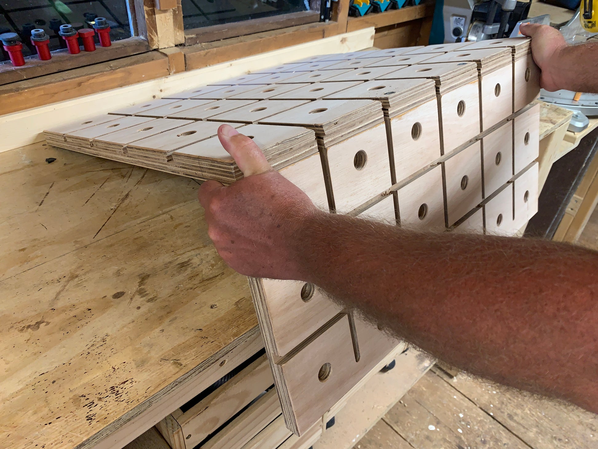 Once in place the two outside dog holes will drop onto the plugs and prevent the system from moving under heavy operations.