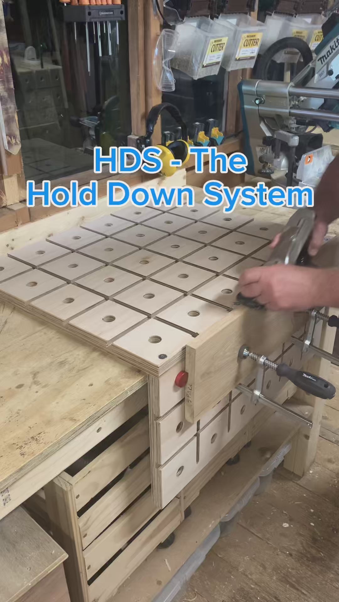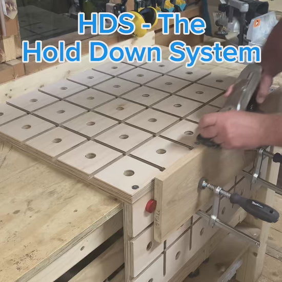 The HDS - Hold Down System is a portable workbench that can be dropped into place on almost any flat surface.