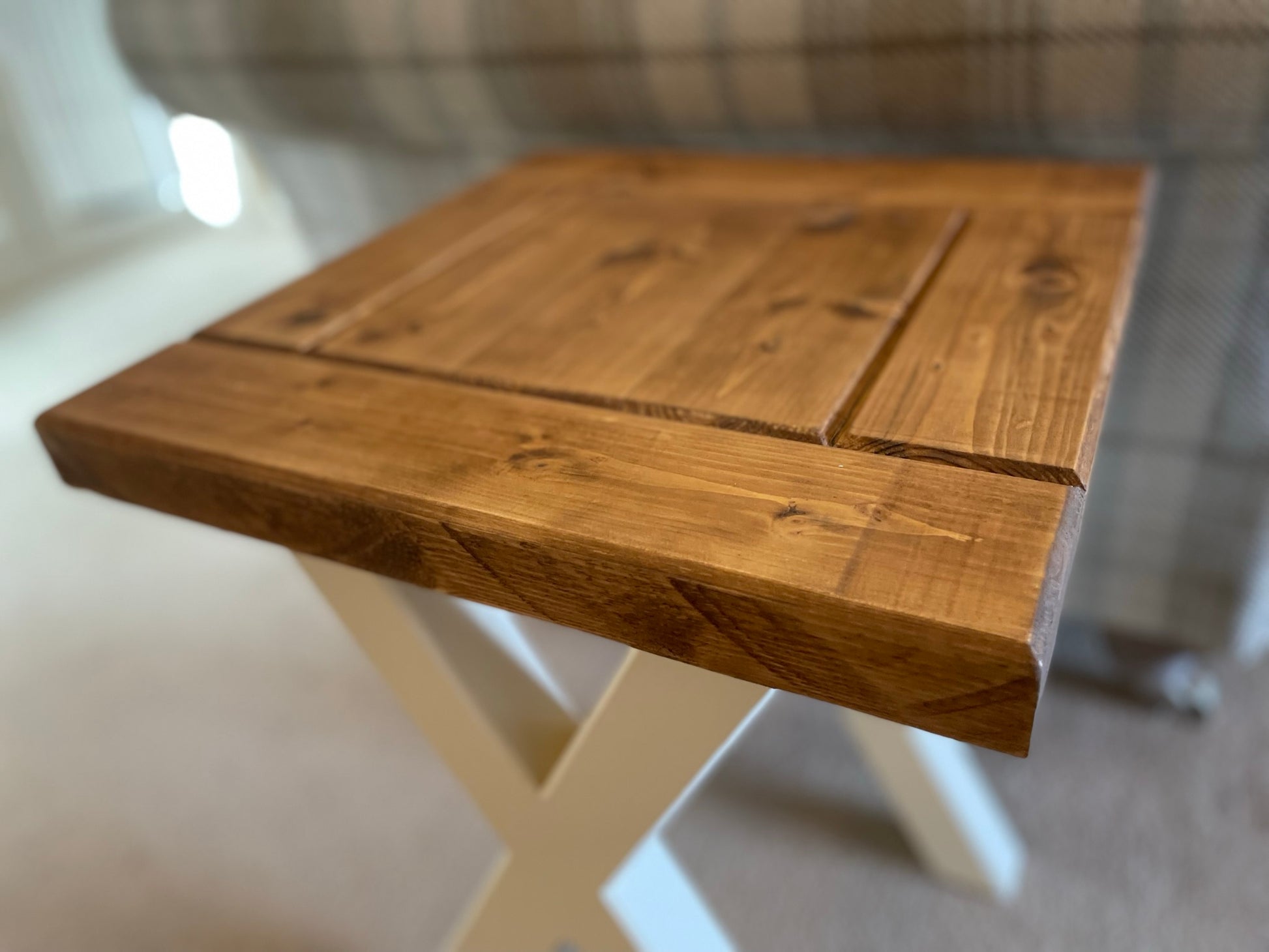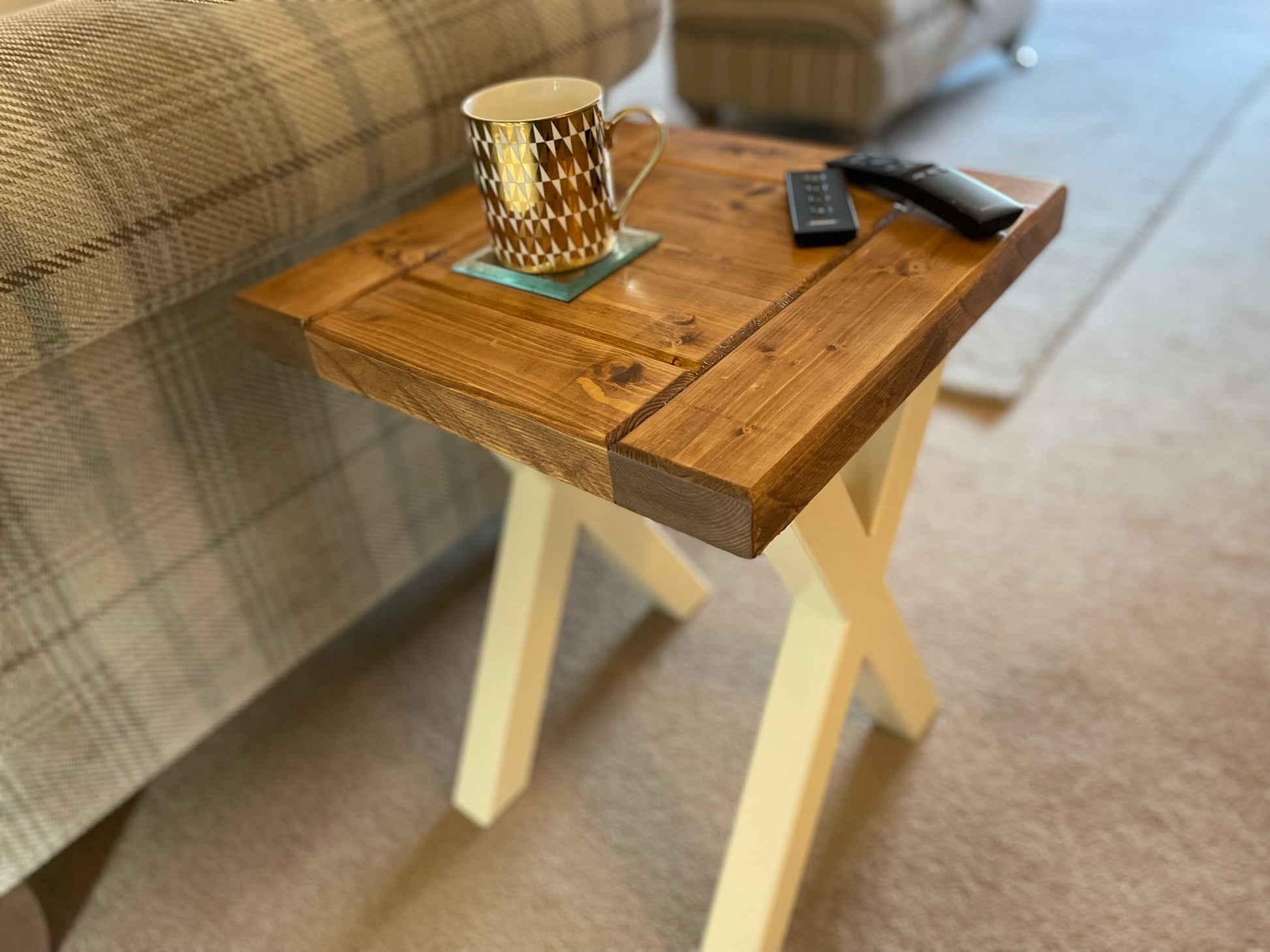 Made from specially selected woods this stylish side table is perfect for any indoor space. The cross legs design combined with the natural wood table top compliment each other perfectly.