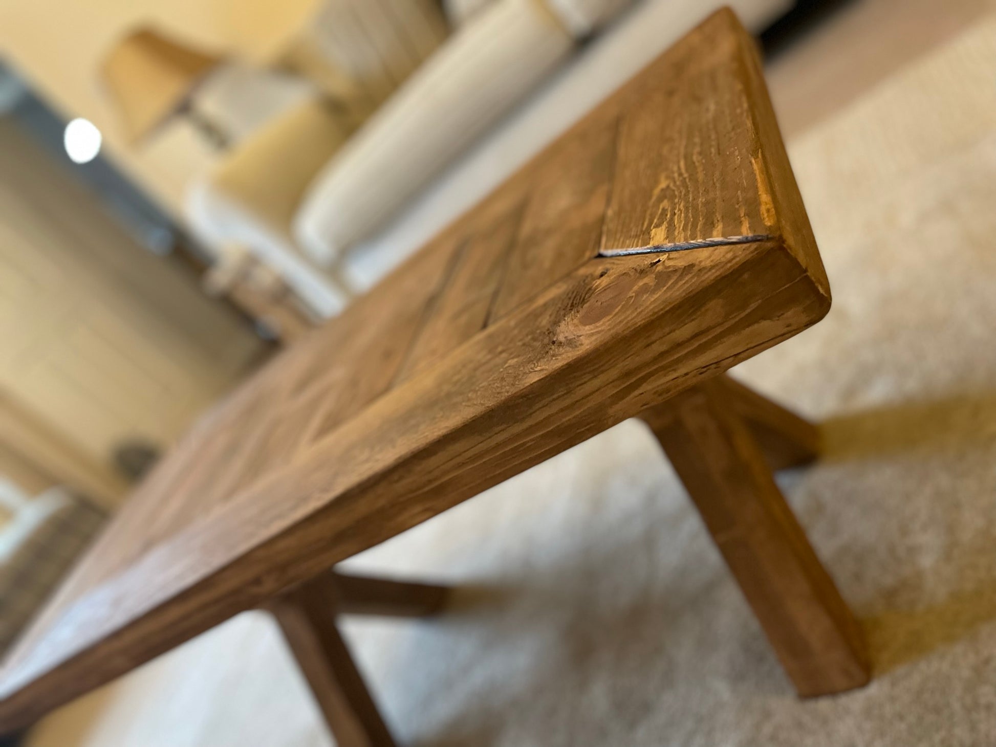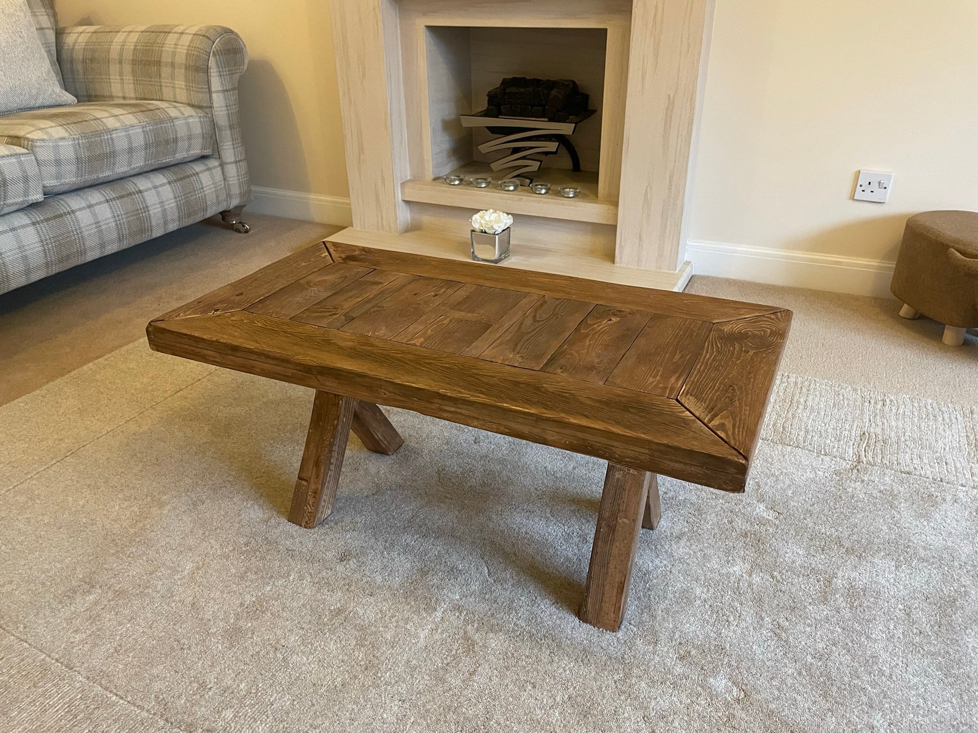 Made from selected timbers, this rustic coffee table is finished in a dark oak and will be the talking point of any lounge or indoor space.