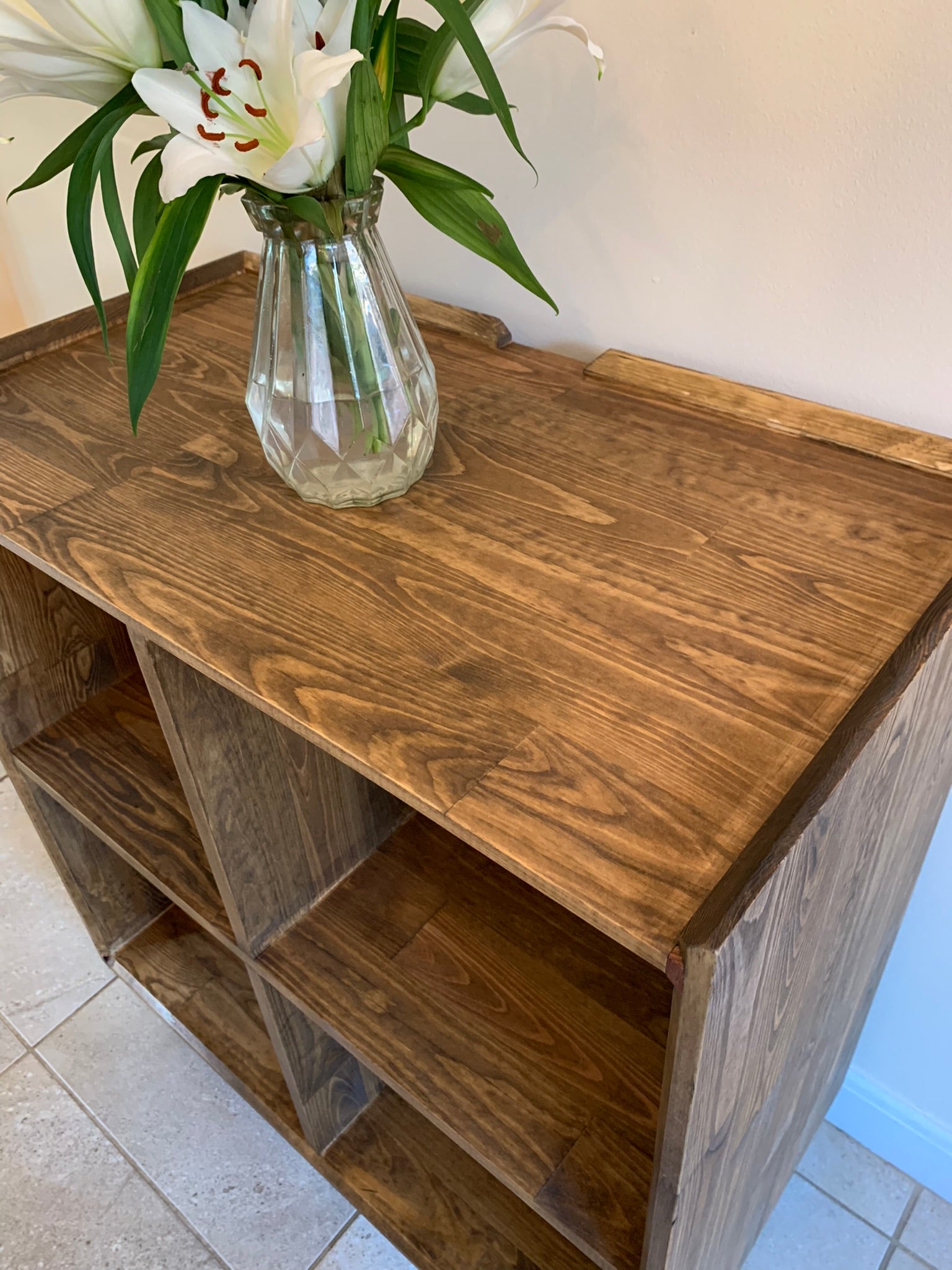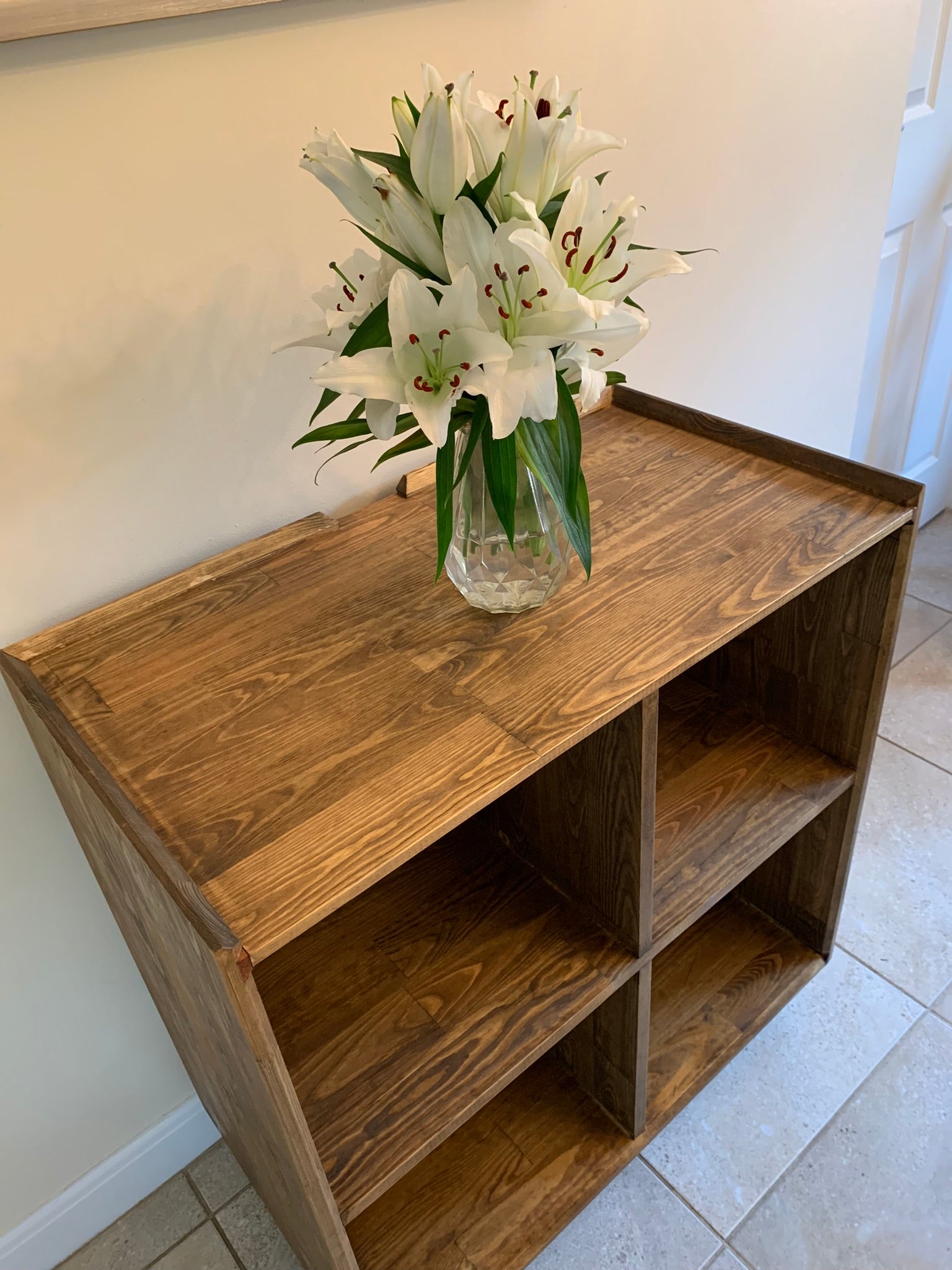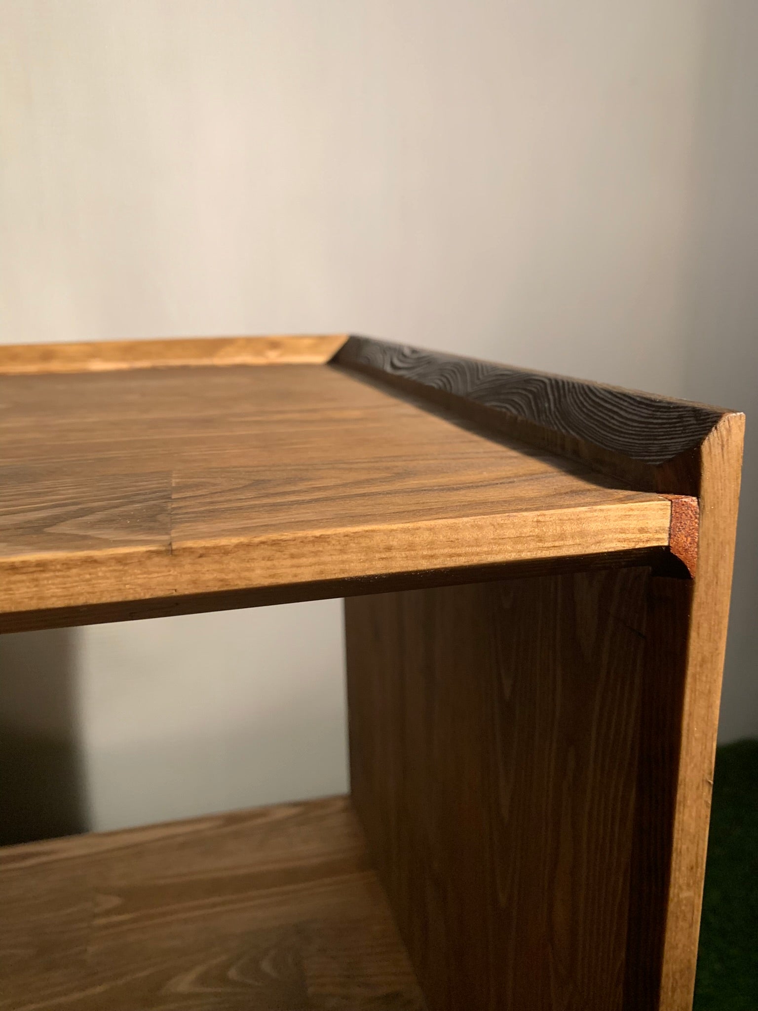Made from selected timbers, this dark oak open backed shelving unit is the prefect space for turntable and much loved vinyl collection. The hairpin legs give it that simplistic design with a modern twist.