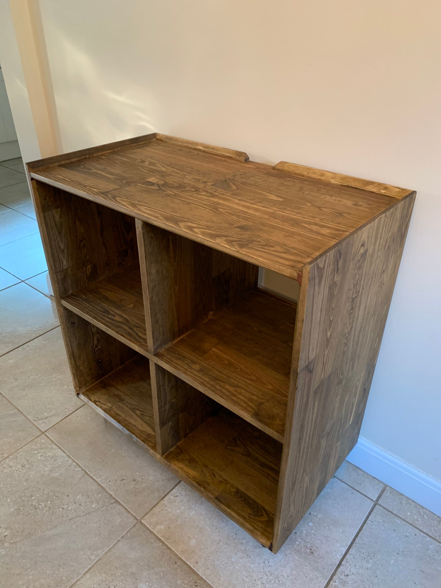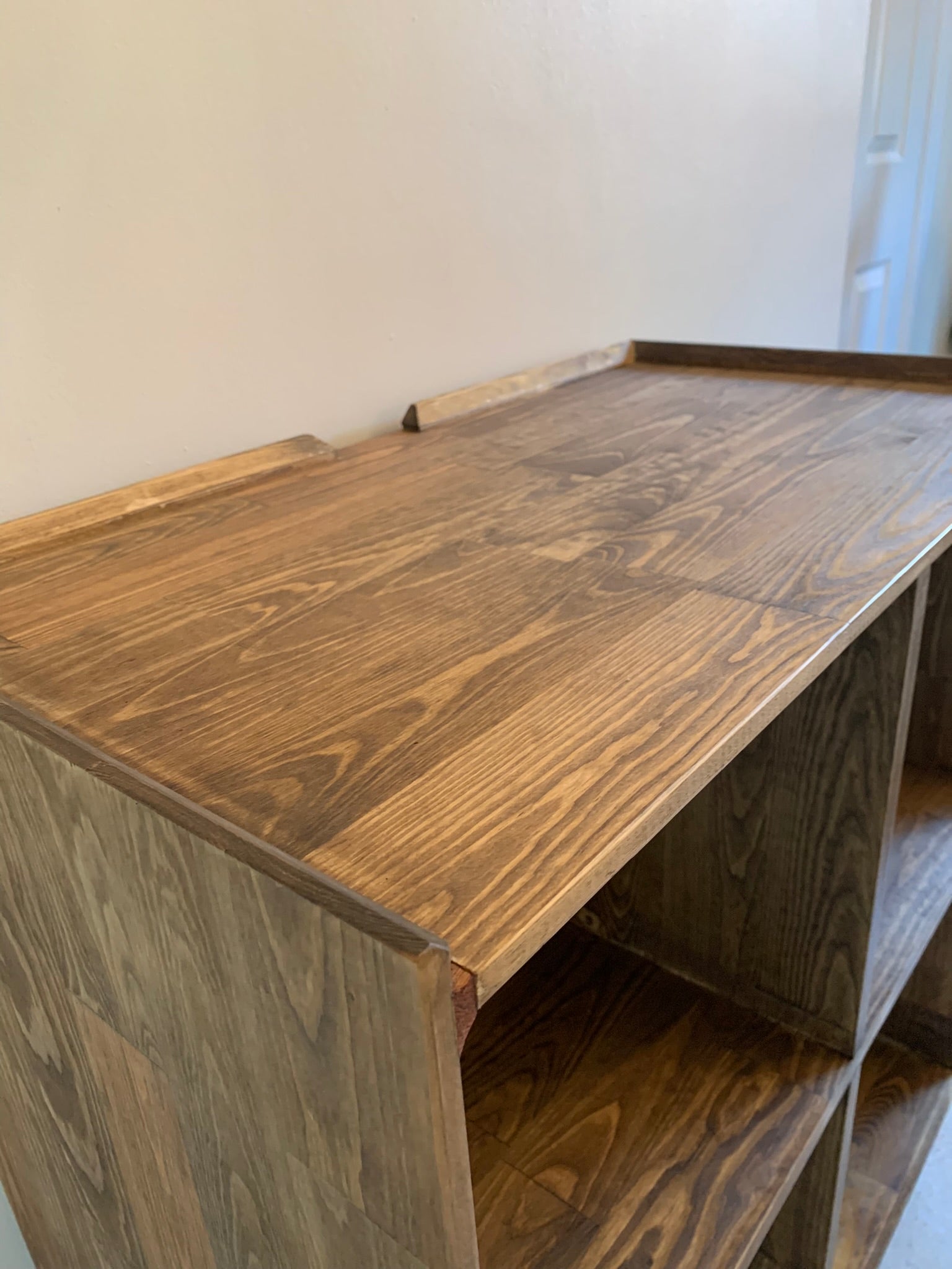 Turntable Stand Shelving Unit in Dark Oak with Hairpin Legs